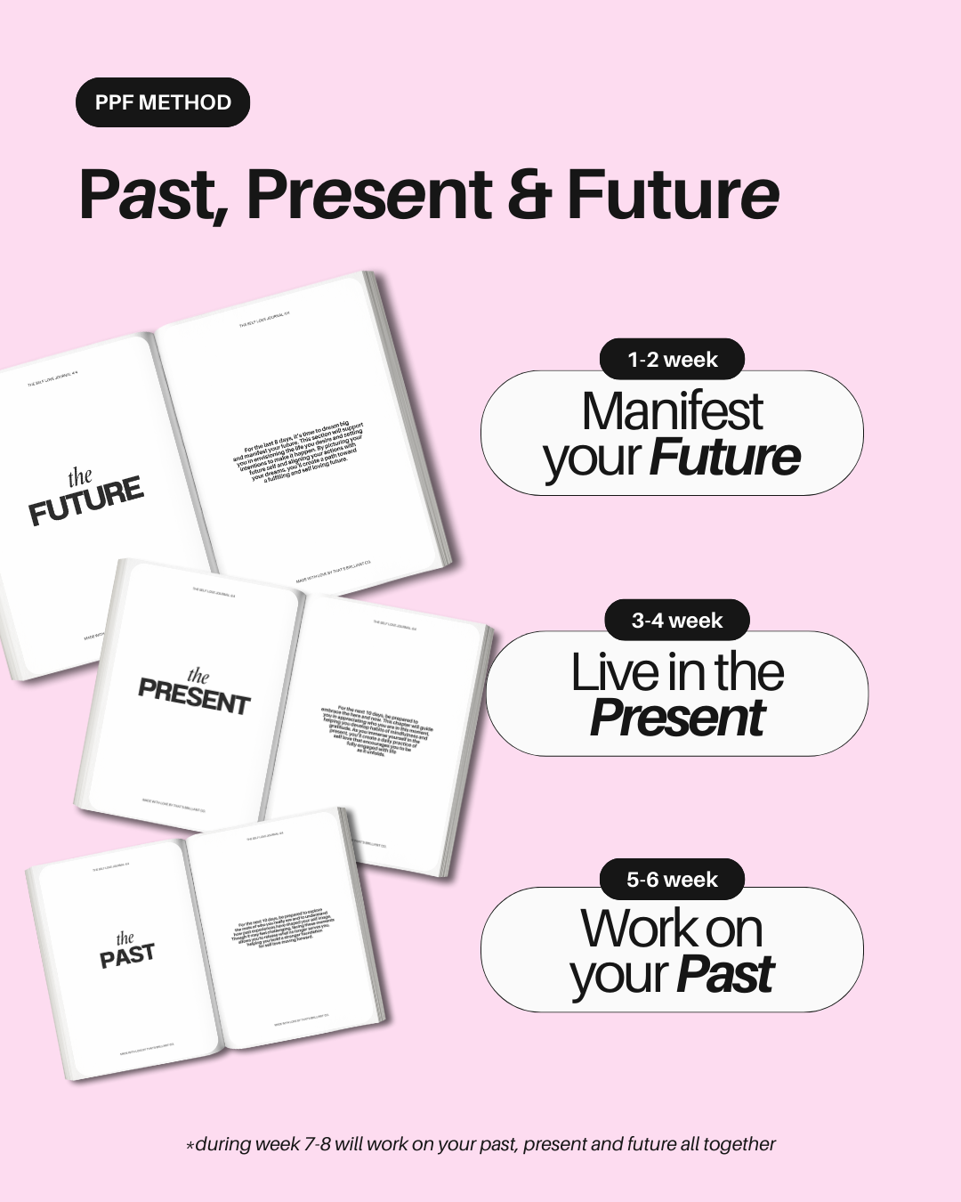 🪞 PAST, PRESENT & FUTURE: this journal has the PPF Method, to help you work on your past, live in the present and manifest your future.